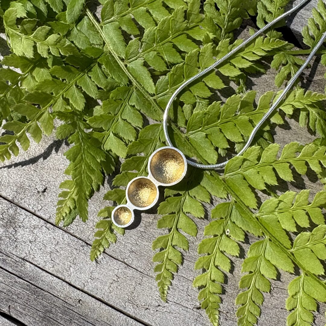 Small triple gold leaf dome pendant Gold Leaf Dome Skills Posted on August 21, 2025 ← Small gold leaf dome pendant Small gold leaf dome earrings →